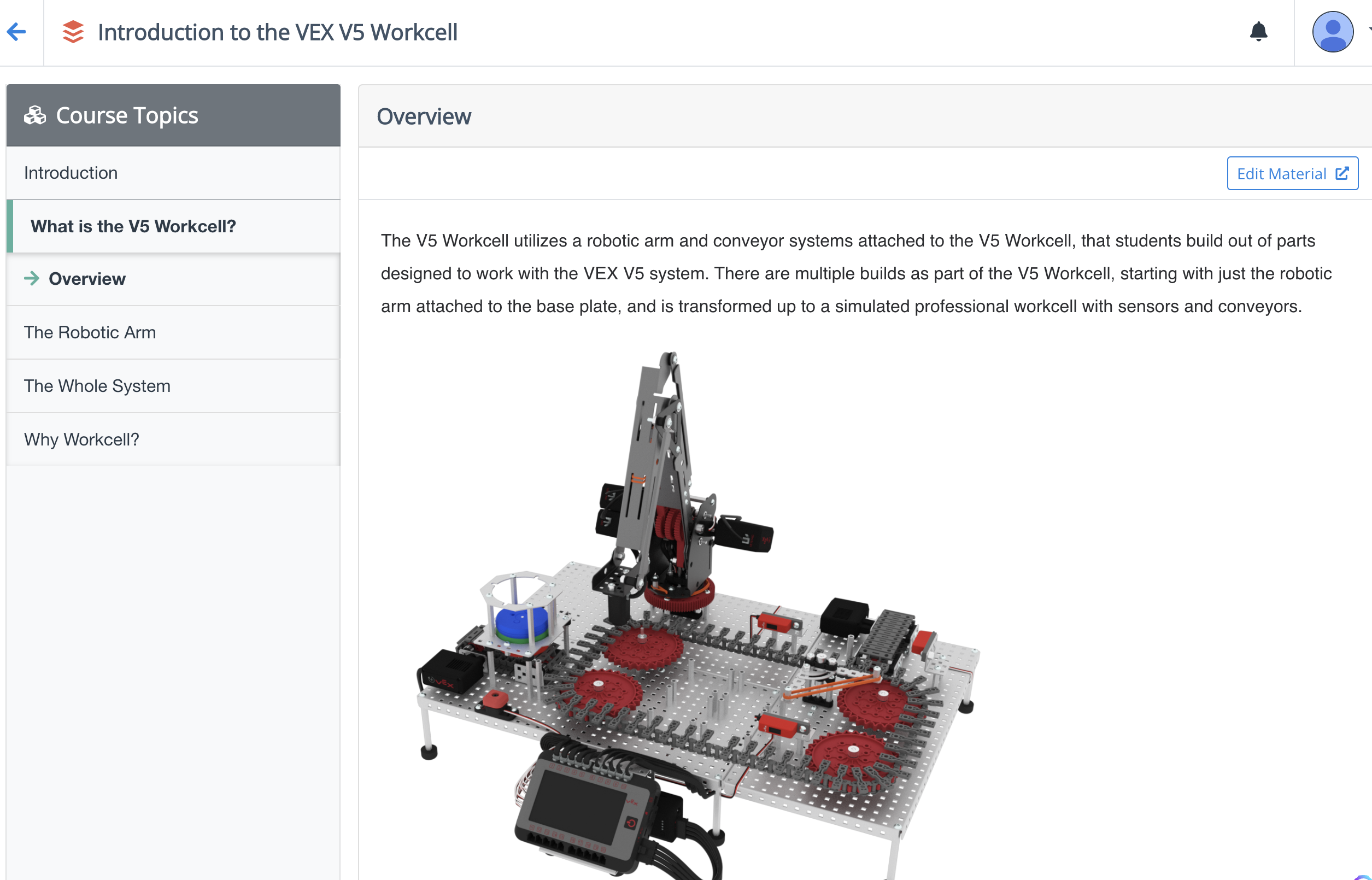 The V5 Workcell utilizes a robotic arm and conveyor system, sensors, potentiometers and controllers and more that students build into a simulated professional workcell, automated micro-factory or assembly line.
